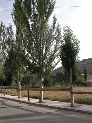 | Es un árbol que por común, nunca hacemos caso, parece que siempre han estado ahí. Nacen y desaparecen, y se van alternando sin más. En nuestro valle tenemos las dos variedades, el negro y el blanco, facilmente diferenciado por las hojas. Marcan el paisaje de todos los valles de la Alcarria, señalan el las aguas del rio, pues nacen pegados a la rivera, mojándose las raices. Los romanos los llamaron "populus" ( nigra y alba, según la variedad) según algunos por arbor populi:árbol del pueblo. | ||