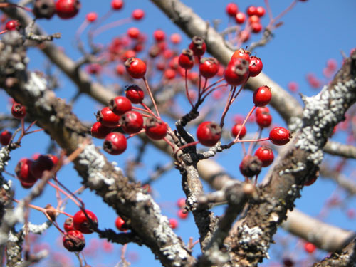 planta los tenéis en algún diario anterior) Leyendo estos días a Antonio Cabrera, me ha gustado cómo describe este encuentro, aunque él los llama escaramujos (que son los frutos de la rosa silvestre, no del espino albar, pero son muy parecidos, incluso yo diría que el majuelo es más llamativo) |