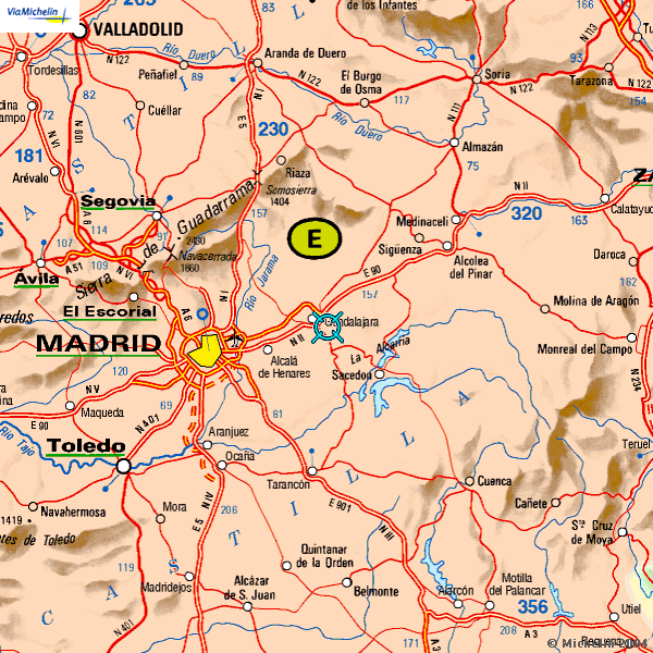 Y dentro de la "Alcarria", estamos en la parte noroeste. Junto a Guadalajara Si venimos por la N II, nos debemos salir en el punto Kilométrico 55, en dirección N-320 Sacedón, Cuenca.