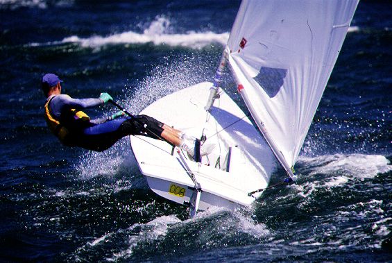 Como habéis visto, he colocado una bandera al principio de la página, es el símbolo del laser, el barco más pequeño de vela ligera con sólo un tripulante de clase olímpica. Pequeño pero muy rápido, ágil, nervioso, fuerte y austero |